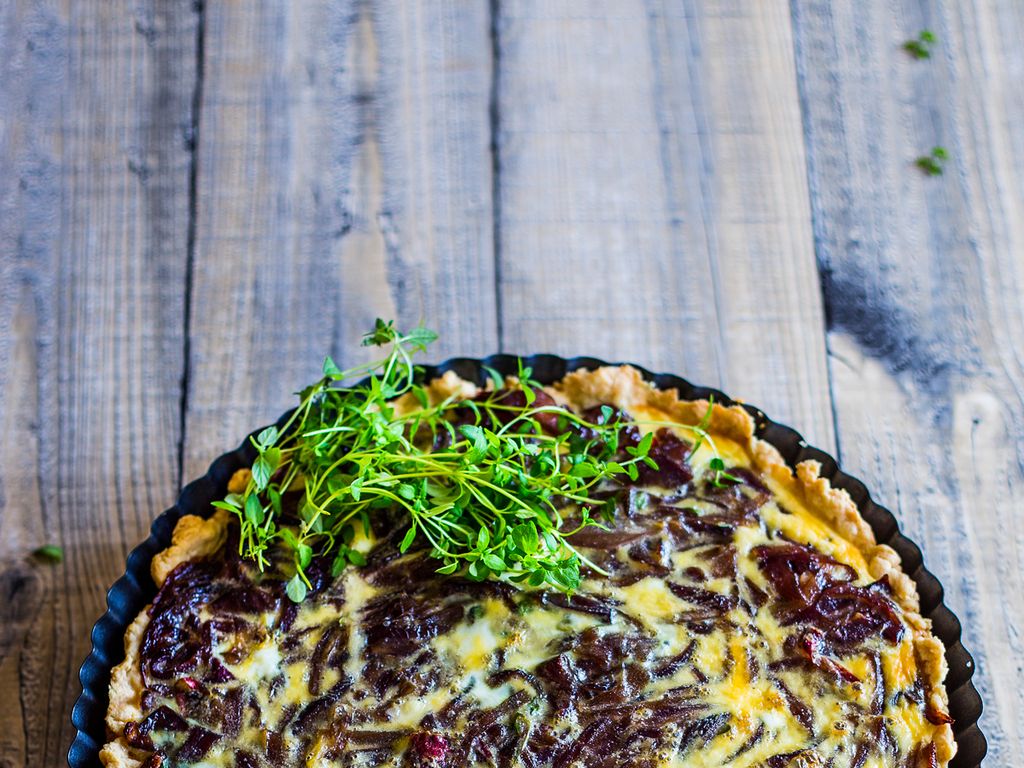 Ať už ho připravíte jako večeři nebo pohoštění na oslavu, ihned se po něm zapráší. Slaný cibulový koláč je hotový během chvilky!