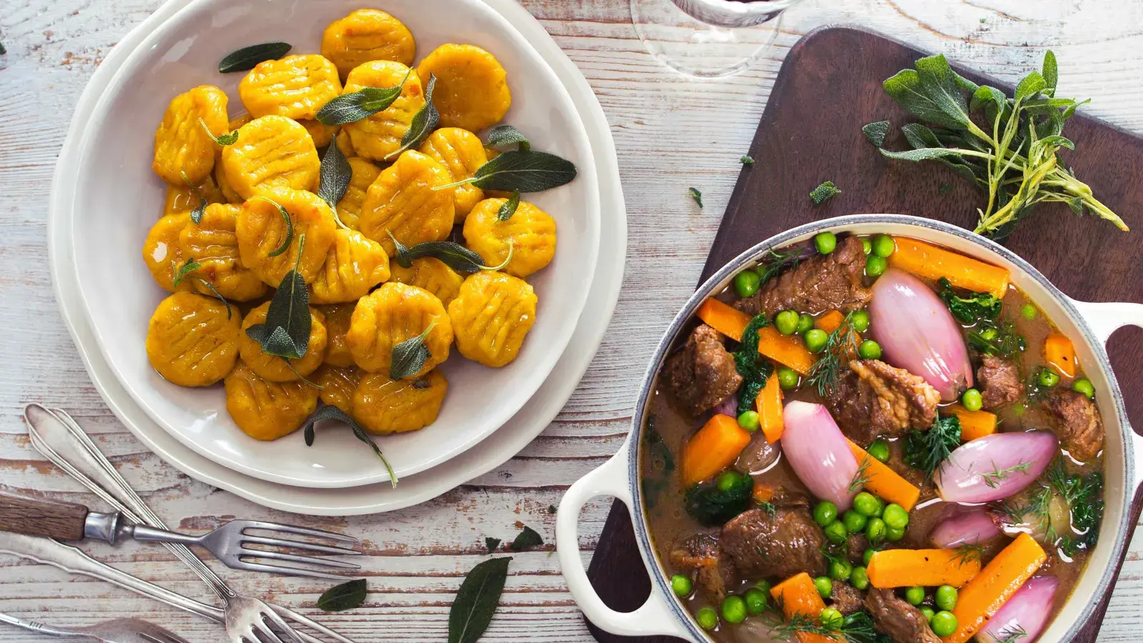 3 Pak na dýni prosejte většinu mouky. Podle potřeby dosolte či dopepřete. Důkladně promíchejte a propracujte, aby vzniklo měkké těsto, lze přidat ještě mouku (snažte se to nepřehnat, aby noky nebyly jako broky). Vyklopte ho na mírně pomoučněnou plochu. Jemně hněťte 3 minuty a rozdělte ho na 4 díly. Z každého vytvarujte 30 cm dlouhého hada. Nakrájejte je na 3cm kousky. Do každého vtiskněte hroty vidličky.