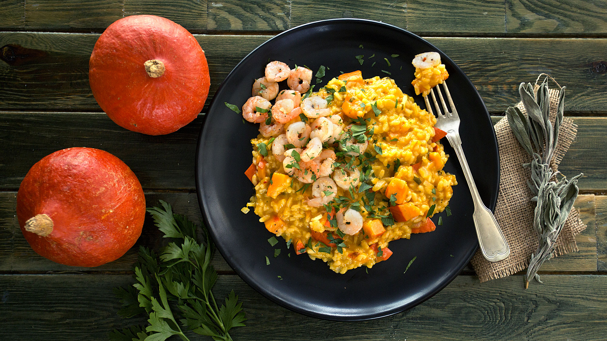 Na dýňovou polévku nám sice nikdo nesmí sáhnout, ale přece jen občas uděláme výjimku a připravíme z dýně i jinou dobrotu. Ve videu najdete návod, jak na naše oblíbené krémové rizoto se šalvějí a krevetami, které polévce tedy silně konkuruje!