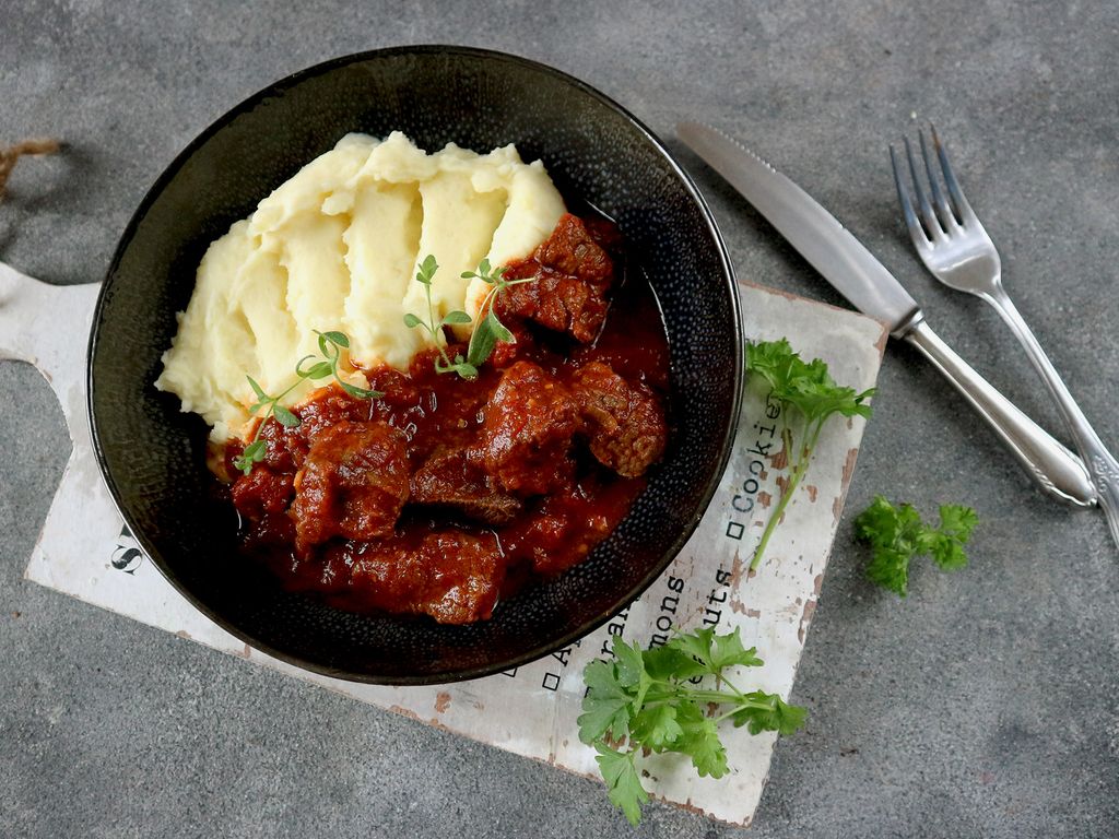 Šťavnaté kousky z masa dušené s rajčaty a provoněné rozmarýnem, to je dokonalý oběd nebo večeře na léto. Chutná s kuskusem i s bramborovou kaší. Anebo třeba s dobrým knedlíčkem.