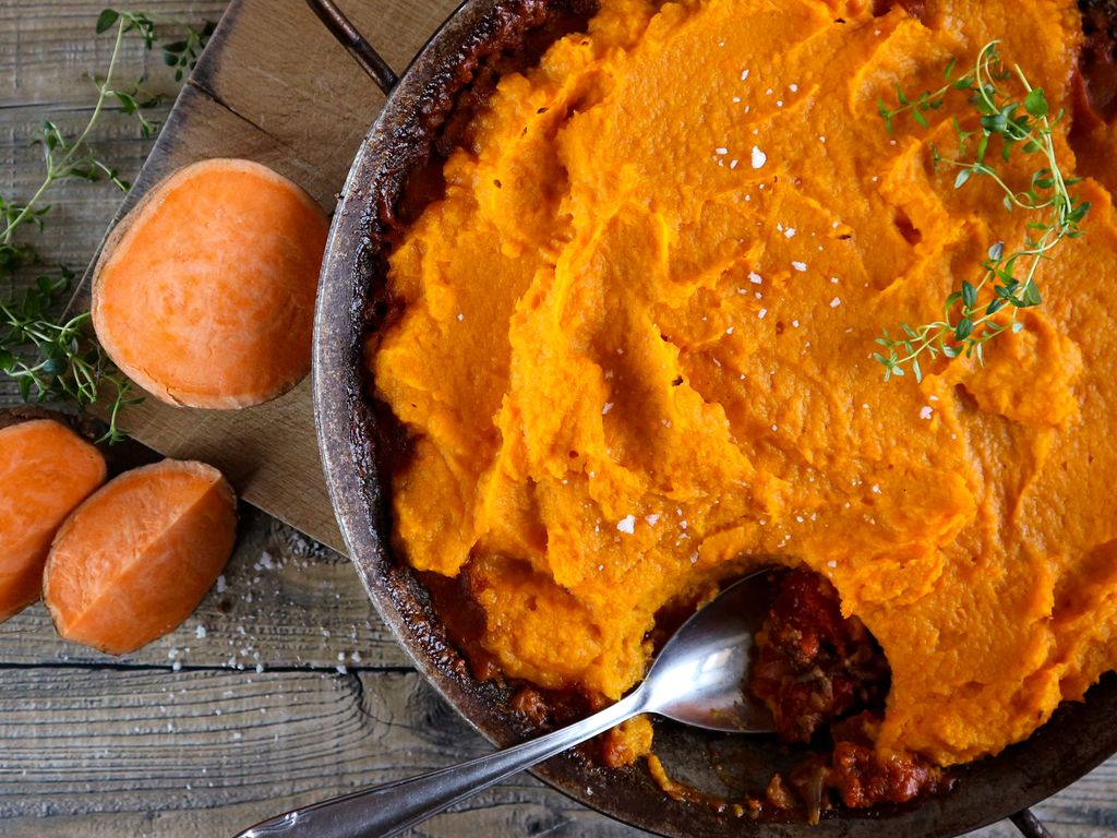 Milujete jídla, která můžete servírovat z jednoho hrnce? Je to pohodlné a nádobí je minimum. Připravte si lahodnou hovězí směs zapečenou s jemným batátovým pyré.