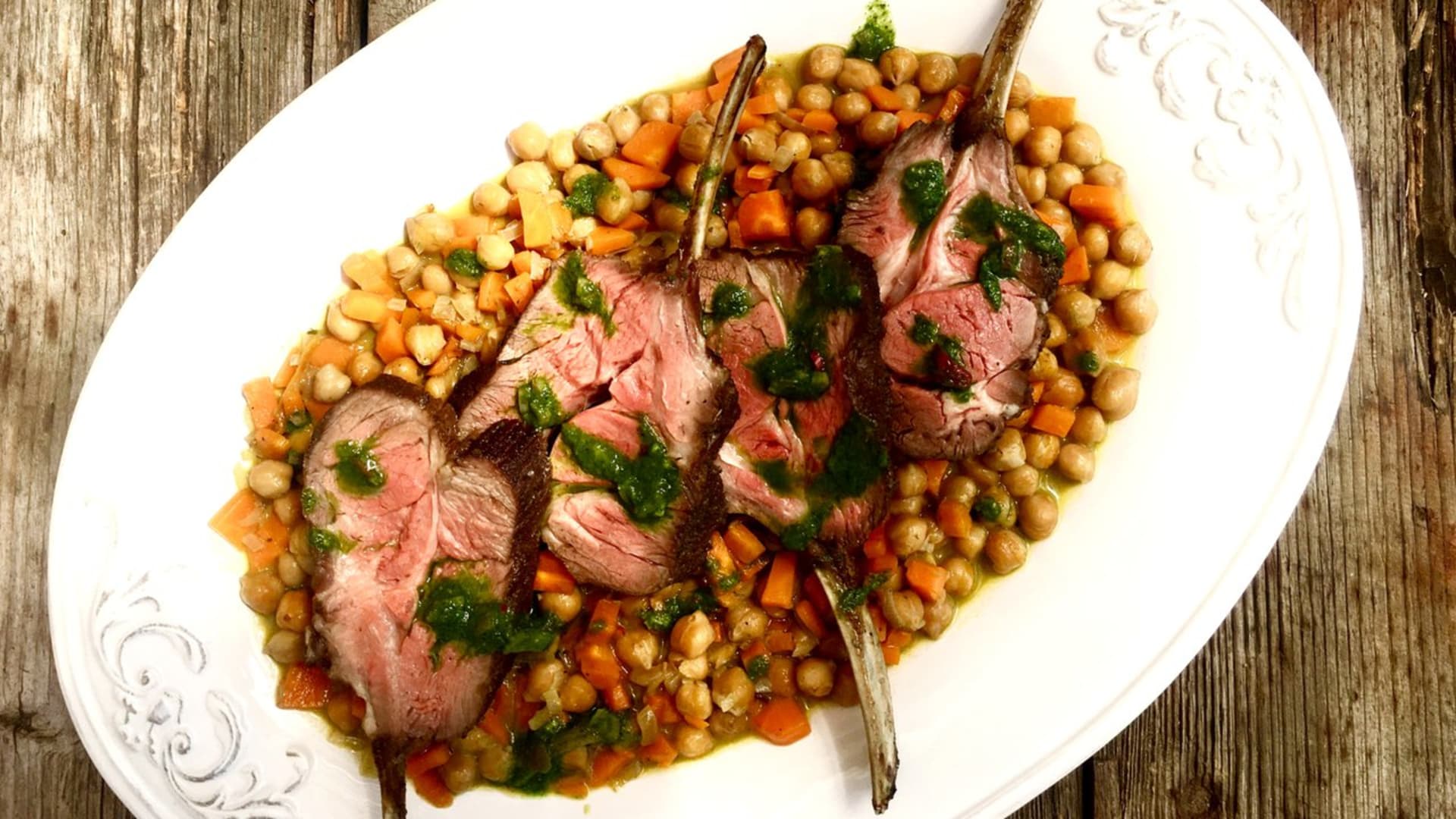 Efektní jehněčí kotletky s typickou kostí, díky které se tomuto kusu masa říká hřebínek, jsou ideální pro slavnostní příležitost. Delikátní chuť masa, zemitá podzimní příloha a svěží zelená omáčka vaše strávníky jistě okouzlí.