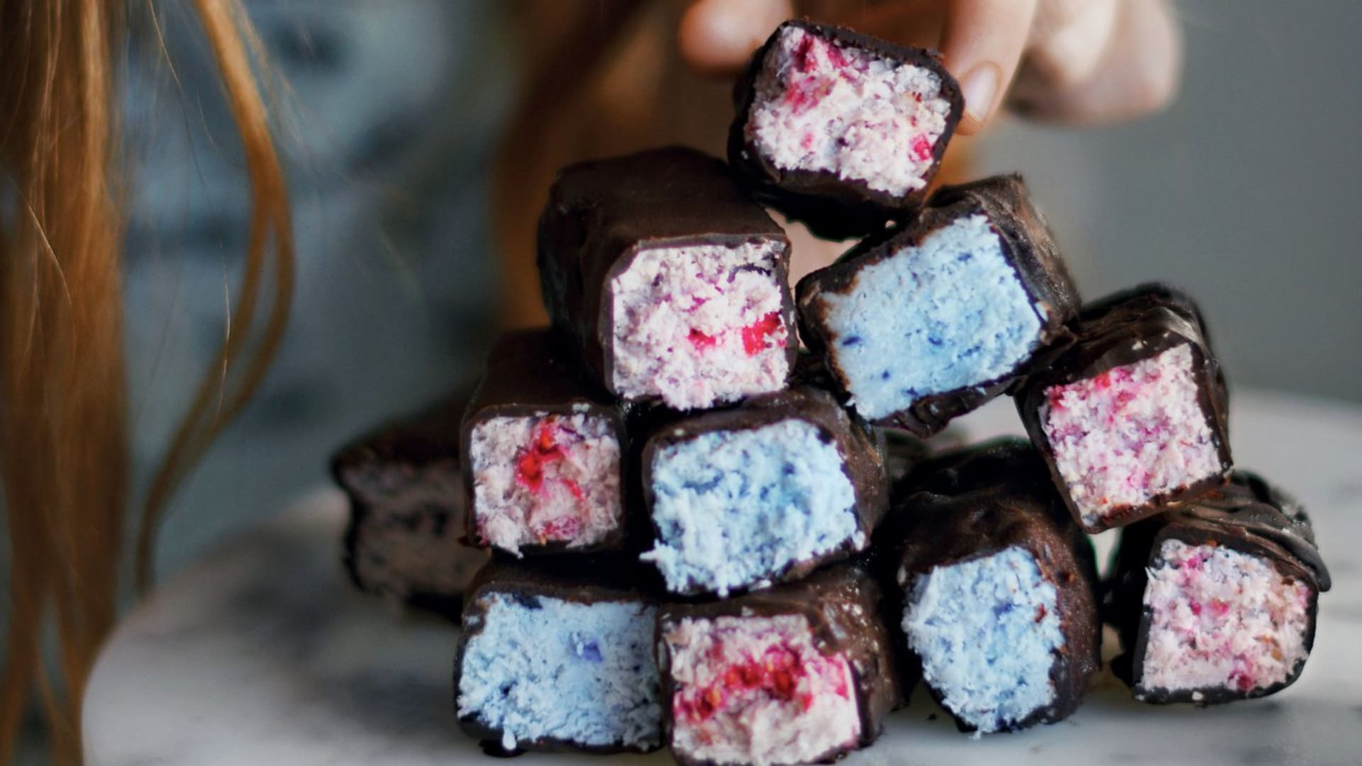 Plech nebo prkénko vyložte pečicím papírem. Hmotu z kokosu na něj přesuňte a rukama vytvořte asi 2 cm vysoký plát obdélníkového tvaru. Vložte na 2–3 hodiny do mrazáku.