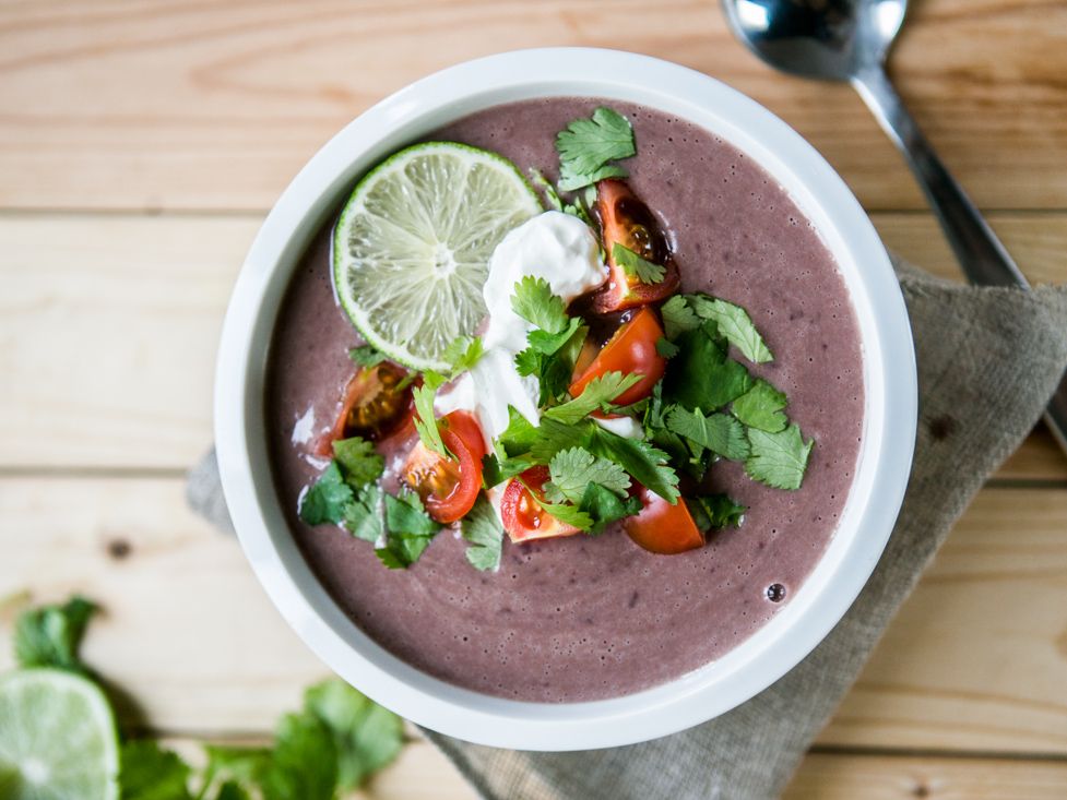 Krok 2: Poté vmíchejte fazole, půl litru vody, osolte, opepřete a asi 10 minut povařte. Poté tyčovým mixérem rozmixujte dohladka, dochuťte limetkovou šťávou a dozdobte kousky rajčat, koriandrem a zakysanou smetanou.