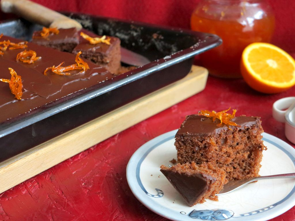 Některé dezerty umím už bez vážení a se zavřenýma očima – jsou doma tak oblíbené, že je peču opravdu často. A tenhle litý perník na plech, heboučký jako mech, patří k nim. Ráda ale experimentuju (a také mi od Vánoc zbyla otevřená sklenice pomerančové marmelády), tak jsem udělala v receptu malou změnu. Hořkosladký pomeranč a čokoláda je totiž opravdu báječná kombinace.
