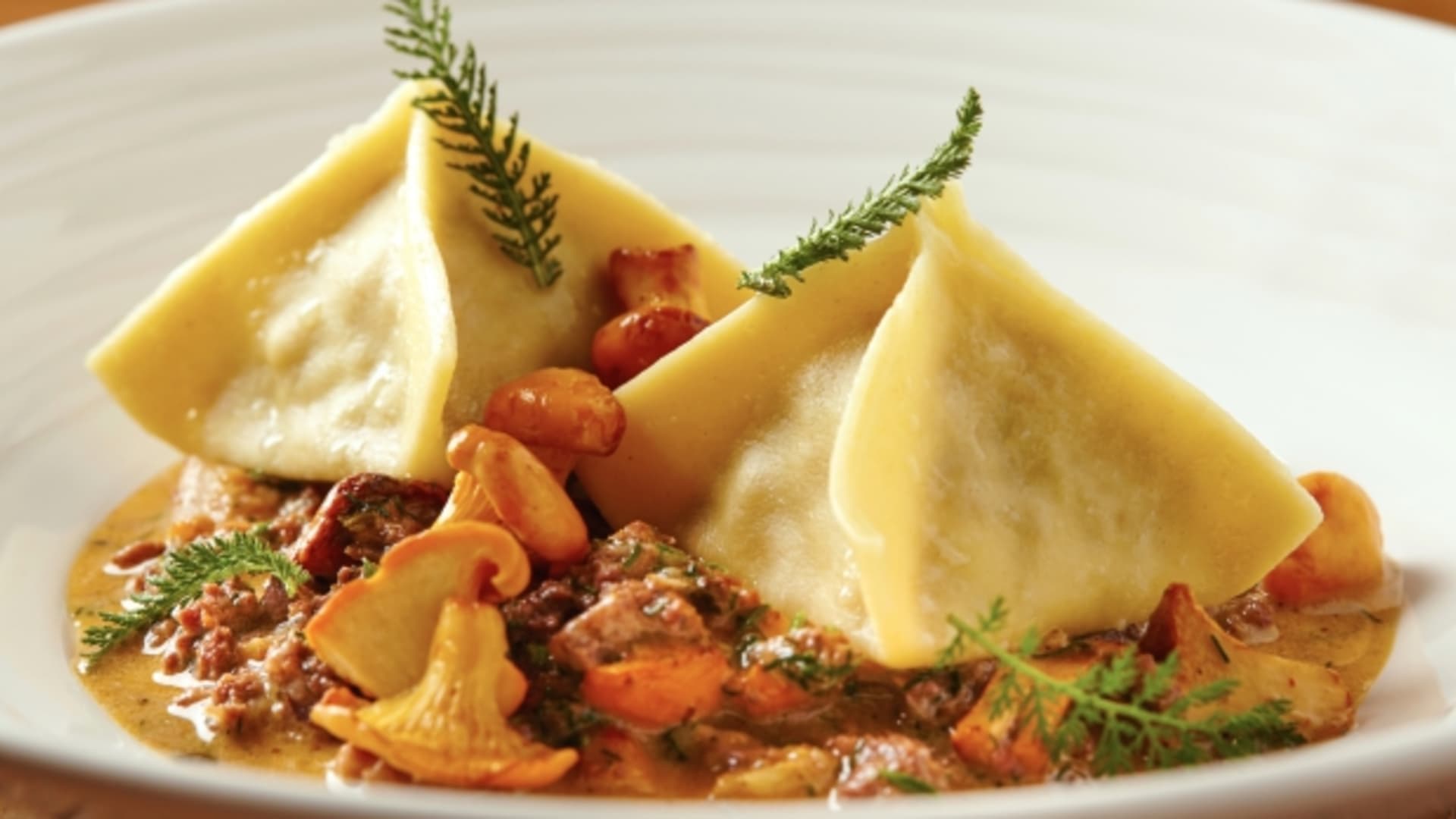 Nechte se inspirovat receptem uznávaného šéfkuchaře Jana Punčocháře z restaurace Grand Cru a přesvědčte se, že i doma zvládnete připravit pokrm ve stylu vysoké gastronomie. Vynikající plněné ravioly s ragú z jemného telecího masa korunují čerstvé lišky.