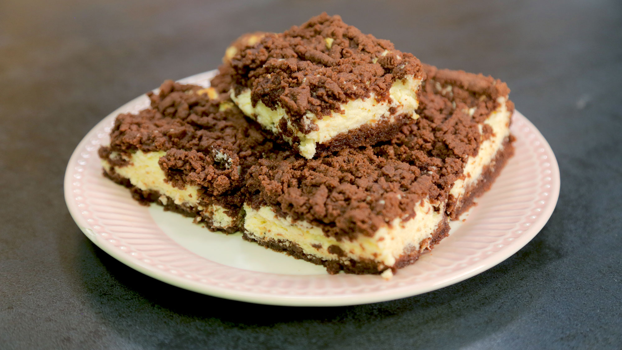 Krok 2: Do mísy robota dejte mouku, cukr, na kousky nakrájené změklé máslo, 1 žloutek, kakao, mléko, kypřící prášek. A šlehejte tak dlouho, až se všechno pěkně propojí. Poté půlku těsta zabalte do fresh fólie a nechte vychladit v mrazáku do doby, než ho budete strouhat na tvarohovou náplň. Většinu zbývajícího těsta nastrouhejte na hrubém struhadle do plechu tak, aby se zakrylo jeho dno. Trošku těsta si nastrouhejte bokem do misky. Poté ho doplňte do okrajů plechu, kam byste se struhadlem těžko dostávali. Nakonec nastrouhané hoblinky prsty jemně umačkejte.