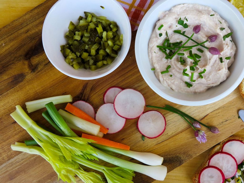 Krok 3: Hotovou pomazánku nechte chvíli v chladu rozležet a podávejte se spoustou zeleniny a bylinek podle chuti. Jestli si chcete opravdu pochutnat, upečte si k pomazánce domácí toastový chléb.