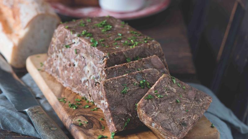 Formy na terinu můžete také vyložit potravinářskou fólií a povrch namísto zalévání zatížit, pak je vyklápění úplná hračka. Zbude-li vám svařený výpek, nechte ho ztuhnout v misce a podávejte milovníkům huspeninových pochoutek.