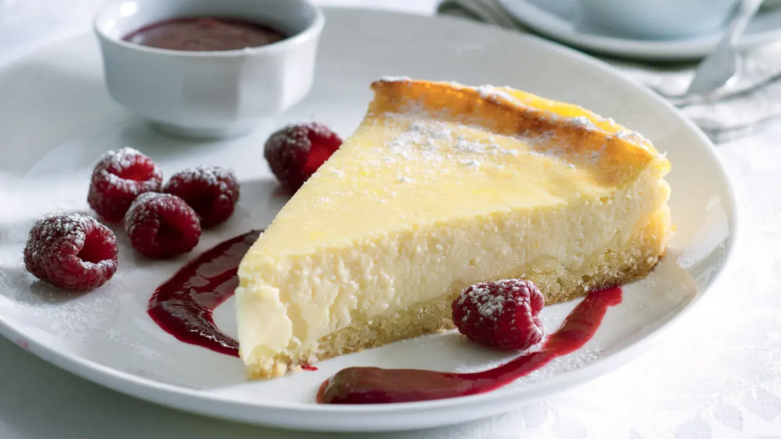 Tvarohový koláč s malinovou omáčkou
