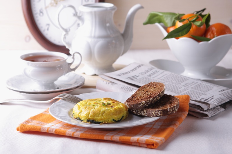 Pokud chcete, aby vejce měla hezčí tvar, použijte čtyři kulaté formičky, do kterých naskládáte grilovanou cuketu, zalijete ji vaječnou směsí a vložíte pod gril.